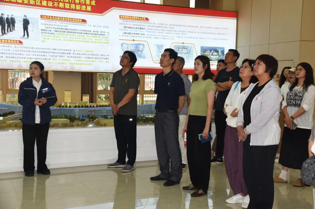 首站参观的是雄安新区规划馆,馆内详细展示了雄安新区的规划蓝图、设计理念和发展愿景。通过讲解员的精彩讲解,大家深入了解了雄安新区在推动京津冀协同发展、探索人口经济密集地区优化开发新模式等方面的重要作用。随后,来到了雄安容东片区南文营社区,这里作为雄安新区首批回迁安置区,已经初具规模。整洁的街道、现代化的住宅楼、完善的配套设施,无不展现出雄安新区建设的速度和品质。紧接着,党员们参观了北京四中雄安校区,这所公司的建设是雄安新区教育资源配置优化的重要举措之一。党员们参观了校园设施,与师生进行了深入交流,感受到了雄安新区在教育事业发展方面的努力和成效。最后,党员们来到了雄安城际站建设展览馆,展览馆内展示了雄安城际站的建设历程、设计理念和技术创新。了解到,雄安城际站作为雄安新区对外交通的重要枢纽,将有力推动雄安新区与周边城市的互联互通,为新区的发展提供强有力的交通保障。