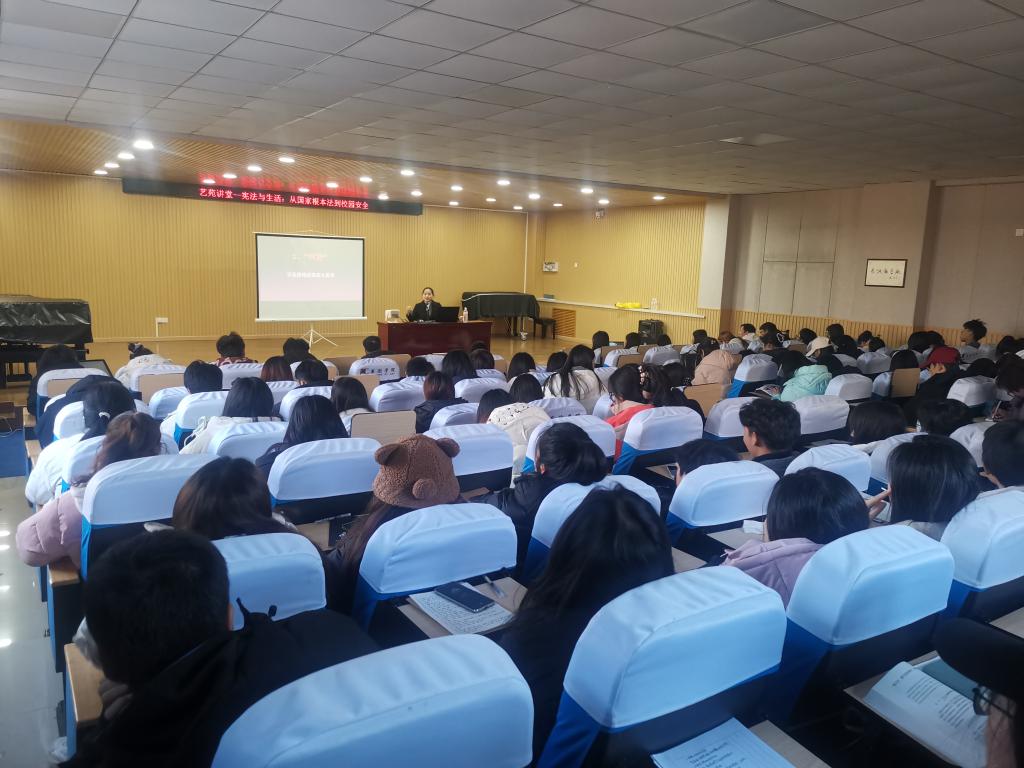 12月4日是国家宪法日,为深入学习贯彻习近平法治思想,弘扬宪法精神,增强师生法治观念,伟德官网于2024年12月5日在艺术楼众诚报告厅举办了“宪法与生活:从国家根本法到校园安全”主题讲座。本次讲座由河北九度律师事务所高庆萍律师主讲,公司各专业师生约150人聆听了讲座。
