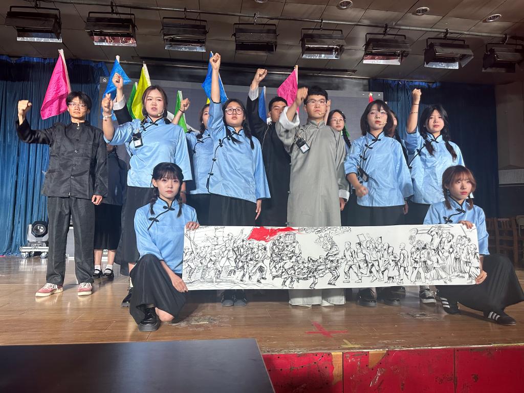 音乐学 2301 班作品《最后一课》,聚焦抗战时期沦陷区的国文课堂,老师哽咽的语调与员工们 "我们是中国人,我们爱自己的祖国" 的呐喊,将中华文化传承的坚守与家国沦丧的痛切交织,以强烈的艺术感染力让观众沉浸式感受民族气节;音乐学 2302 班作品《火种》,再现工农红军长征路上的风雪征程,革命队伍在冰天雪地中初心不改,少年新人亦在跋涉中根植信仰火种,回溯红色理想星火燎原的壮阔开端;音乐学 2303 班作品《坑道里的故事》,致敬抗美援朝英雄,以志愿军战士在缺粮缺水的坑道中坚守阵地的场景,结合与美军俘虏的交锋互动,将战场残酷与家国情怀熔铸一炉,诠释 "最可爱的人" 的热血与乐观主义精神;美术学 2301 班与 2302 班,都聚焦 "五四运动" 主题,用激昂台词与沸腾表演复刻觉醒年代革命先驱与青年学子的救国热忱,让百年前的爱国精神穿越时空,在舞台上与当代青年的青春之姿共鸣;视觉传达 2301 班作品《一二・九运动——呐喊》,还原党的领导下爱国员工运动的壮阔场景,青年学子的热血无畏与对国土的坚守在演绎中淋漓尽致,让一二・九运动精神穿透历史,叩击观众心扉;环境设计 2301 班作品《双星家书》,以方志敏、赵一曼烈士家书为载体,演员在台灯微光中化身写信人,从对家人的愧疚牵挂到为革命赴死的决绝,用细腻台词解码先辈"以热血赴使命"的初心,字字戳中泪点;舞蹈表演 2301 班作品《绣红旗》,以舞蹈语言演绎江姐带领战友狱中绣红旗的场景,刚柔并济的舞姿展现革命者在艰苦环境中对理想的坚定信念,让红岩精神借艺术之美绽放光芒。