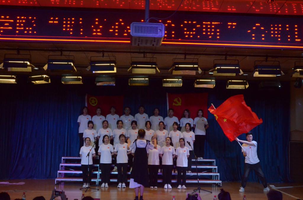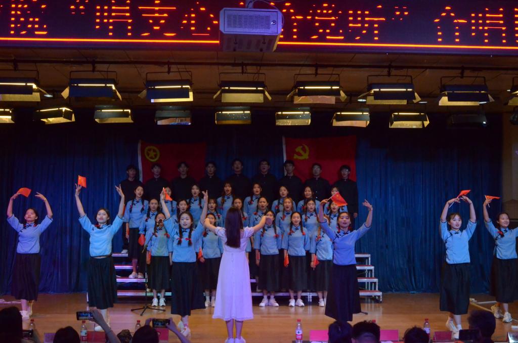 比赛最后,由音乐学专业韩锐、骞漪冉、王研和乔一博几位同学倾情献唱了歌曲《岁月征程》,歌声雄劲有力、宛转悠扬,歌颂了党的百年征程、国家之昌盛、民族之脊梁,将全场气氛推向高潮!