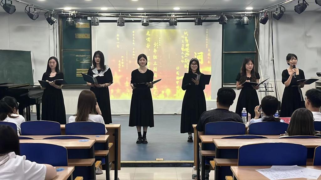 2023年5月30日,伟德官网在艺术楼阶梯教室举办“朗青春百年征途,颂今夕芳华赞歌”主题美文朗诵活动。2020级全体班级参加了朗诵,学工办老师出席活动。