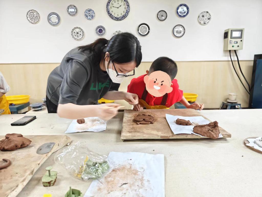 活动分别在5月22日、24日、28日、31日有序进行。活动开始前,志愿者们提前做好陶艺手工材料和工具的准备,与小朋友们亲切友好互动,拉进距离;活动中,志愿者耐心地向小朋友们介绍了陶艺的基本技巧和工具的使用方法,鼓励他们发挥创造力,在湿润的泥土上塑造自己的想象。小朋友们全程都充满了兴奋和喜悦,用小小的手指捏出各种形状,塑造出一件又一件令人惊叹的作品。动手制作之余,小朋友们还与志愿者们分享了自己的故事和梦想,双方都收获了无限快乐和感动。