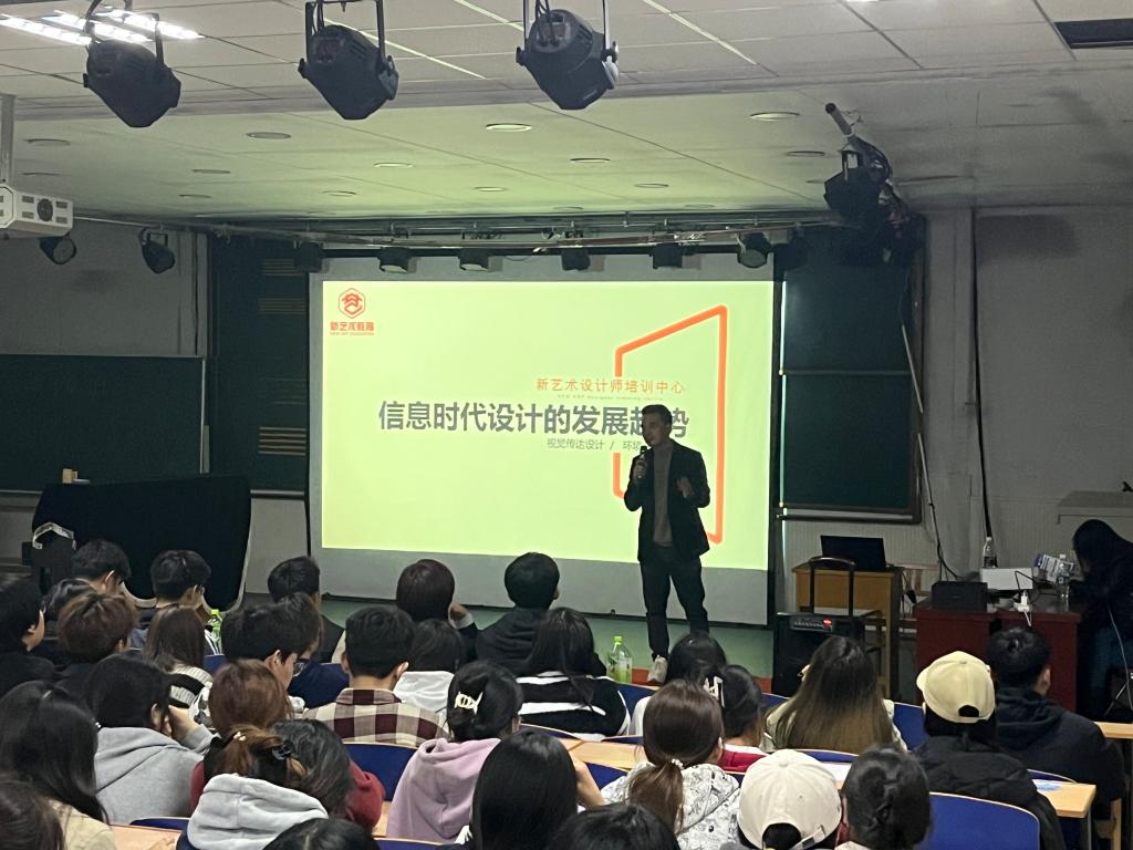 随着信息时代的快速发展,设计也在不断地向数字化、智能化、个性化等方向发展,信息时代对设计公司的影响,作为未来设计领域主力军的老员工应该做好准备。为引导艺术设计专业员工把握时代脉搏,做好思想和专业能力储备,伟德官网团委于2023年10月27日19:00在开发区艺术楼阶梯教室举办“信息时代设计的发展趋势”主题讲座,视觉传达设计、环境设计等专业近200人聆听了讲座。