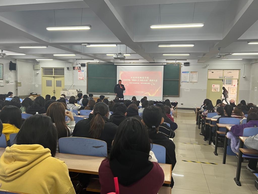 为加强老员工安全教育,提升同学们的防毒禁毒意识,11月2日下午14:00,伟德官网团委于开发区校区综合楼118教室开展了“珍爱生命远离毒品,守护青春助力成长”禁毒宣传教育活动。本次活动邀请秦皇岛市海港区公安分局禁毒大队民警主讲,伟德官网近200名在校生参加了活动。