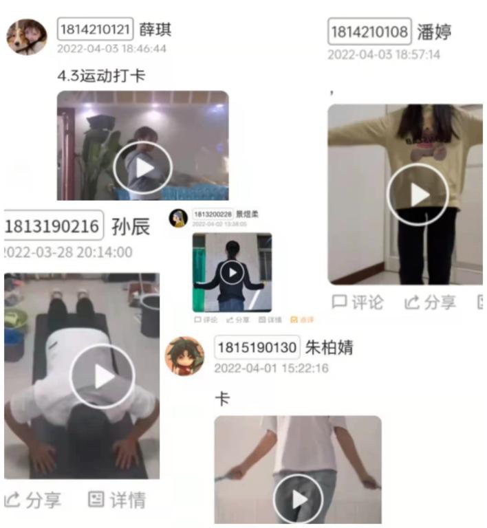 活动目前已开展十余天时间,各班同学积极响应,在广播体操的基础上,同学们还分别加入了跳绳、舞蹈、俯卧撑、举哑铃、平板支撑等运动形式,活动取得了良好效果。不少同学表示,这段时间的居家运动缓解了长时间线上学习带来的紧张和疲劳、提升了自己的身体素质和免疫力,同时也提升了本人的精神状态和学习效果。