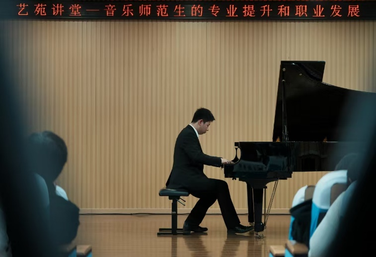 职业发展内容涵盖现阶段音乐师范生钢琴弹奏素质和能力的需求;对音乐师范生钢琴弹奏能力和储备提出要求;对音乐师范生钢琴弹奏的学习方法和发展方向相关建议。李民教授分别对音乐学本科生24级杨雅茹、23级研究生焦舒婷现场指导。