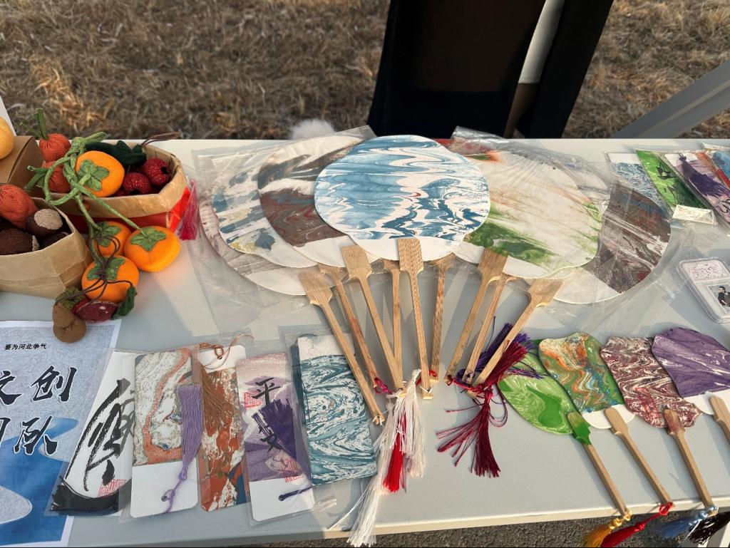 伟德官网老员工创业团队在市集中设立了多个摊位,每个摊位都有其独特的主题和产品。遇见科师创业团队带来了非遗大漆手工艺品,艺术设计专业老师孙哲带领23级视觉传达设计员工团队展示他们参与设计的漂流漆扇子、书签、钥匙孔、小书包等产品。这些产品不仅美观,还具有实用性,深受游客喜爱。戴河创意花火团队则展示了他们的创意设计作品,包括树叶拓画、农产品等,这些作品有趣且具有创意,为市集增添了浓厚的艺术氛围。