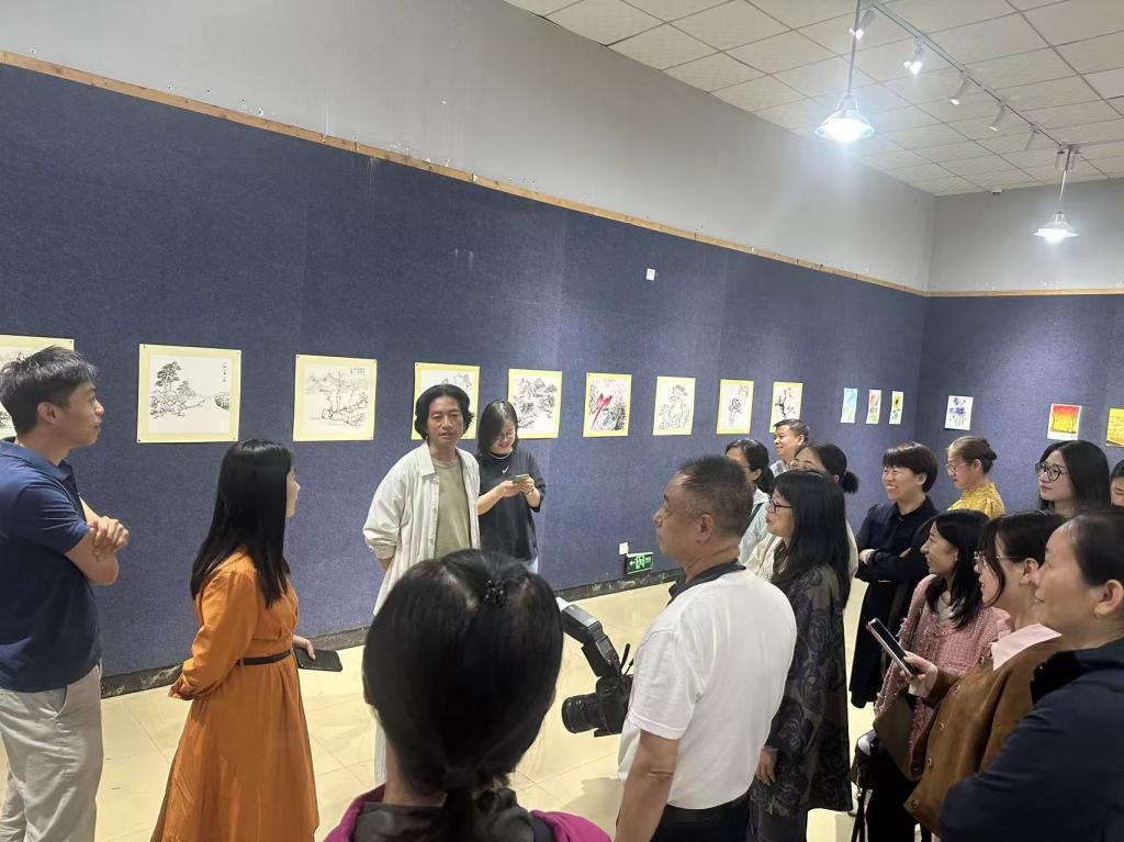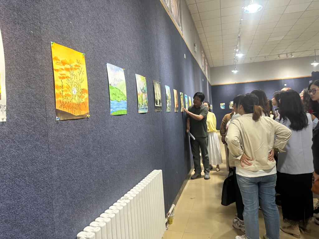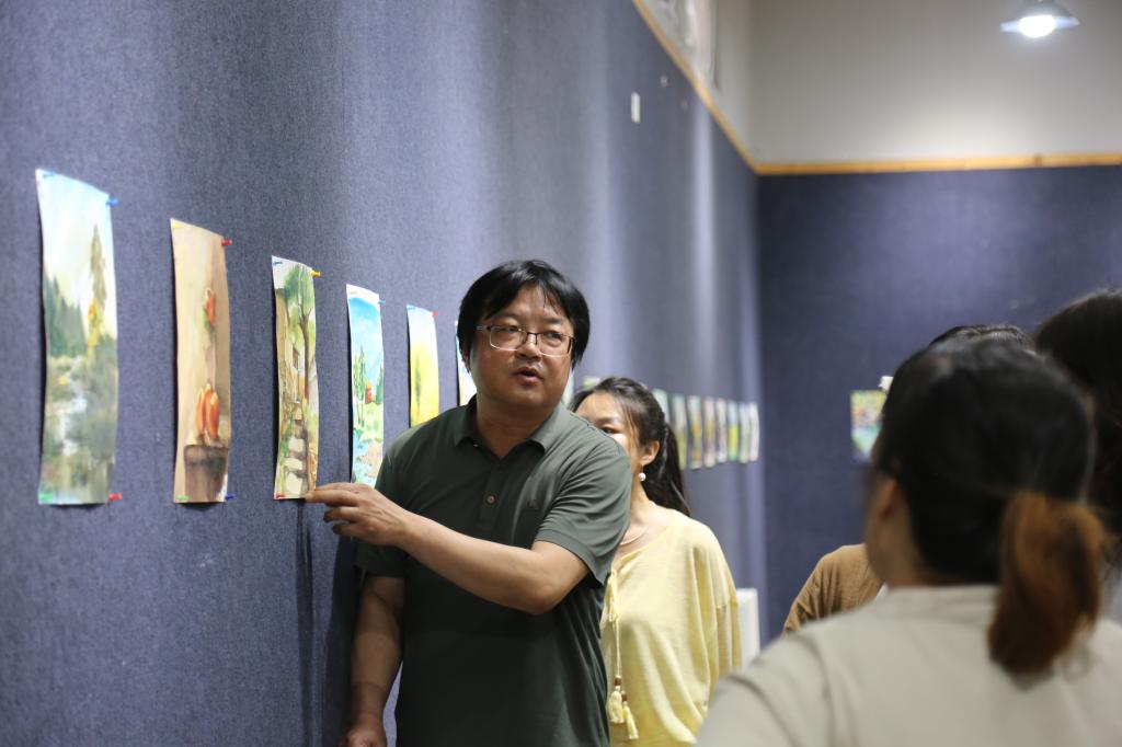 艺术楼展厅内,一场充满创意与温度的美术作品展吸引了众人驻足。学员们在12天培训中完成的国画、水彩、陶艺、扎染等实践创作作品整齐陈列,既有对传统水墨意境的现代诠释,也有对民间手工艺的创新表达。伟德官网经理刘进成教授与井庆昂教授逐一点评作品,从构图技法到文化内涵,从教学实践的可迁移性到员工审美引导的切入点,为学员们带来了一场“沉浸式”艺术指导课。