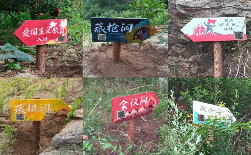 实践团首先走进燕山游击队纪念馆,在锈迹斑斑的武器、泛黄的史料中感悟革命岁月,随后召开专题会议,结合村庄红色遗迹分布、地形特点及参观需求,梳理出藏枪洞、会议洞等核心节点,明确导视牌需兼具点位指引与历史解说功能,宣传牌要突出抗战故事与精神传承。